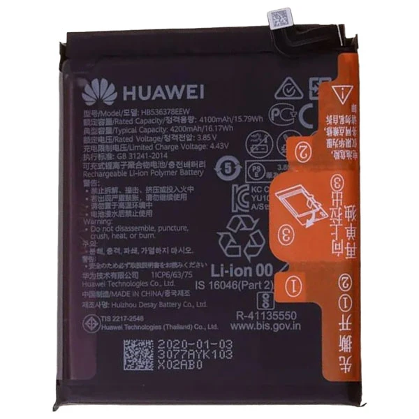باتری اورجینال هواوی P40 دارای برچسب معتبر هواوی، اطلاعات دقیق فنی، وزن استاندارد و شماره سریال منحصربهفرد است. بستهبندی آن نیز با نمونه فابریک گوشی مطابقت دارد و معمولاً در گوشیهای اصلی، باتری قابل تعویض توسط کاربر نیست و برای تعویض نیاز به تخصص فنی است.